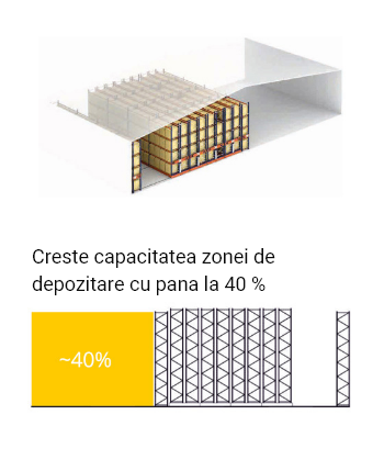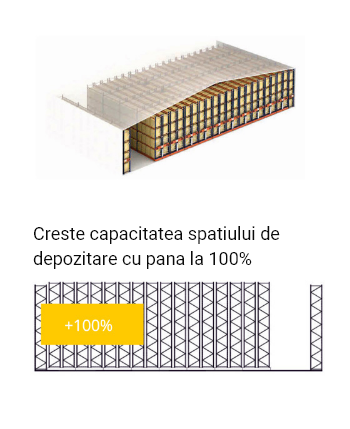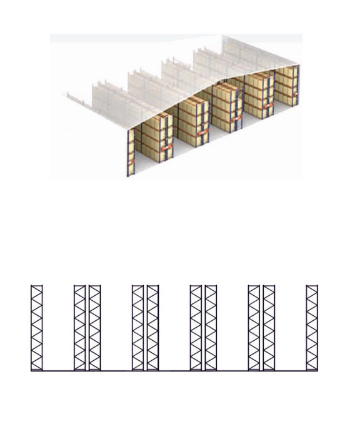 These pallet racks are mounted on movable bases, which easily move on rails fixed in the floor, creating an access aisle only in the required area.